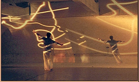 The backgrounds are often unconventional: factory halls, historical ruins, billiard and disco-halls. Bangalore witnessed her proficiency at Zero Gravity with City Tags, an ongoing project spanning Baden, Berlin and Zürich, that was part of Attakkalari¹s Bangalore Biennial. Daniela has a special affinity for performing artistes, some of whom have described her as ³creative², ³sensitive² and ³with a fabulous spirit that transcends everything!² The abstract nature of dance and music gives her ³more freedom to createŠ with dance and light coming together like two partners². India has taken Daniela to heart. She, in turn, is fascinated with the constant colour and the quality of the bright sunlight that contrasts with her native Switzerland. But she observes that lighting in India ³is just a technical job not an art². Besides lights, Daniela Zehnder has devoted many years to the study of the moving body. Dance therapy in mental asylums was followed by massage therapy. She works with a variety of techniques that aim to promote physical mobility and psychological relaxation. She holds classes in creative movement for hearing-impaired children, and adults with severe learning handicaps. In the process, Daniela has learned a lot about ³human perception without the use of language².